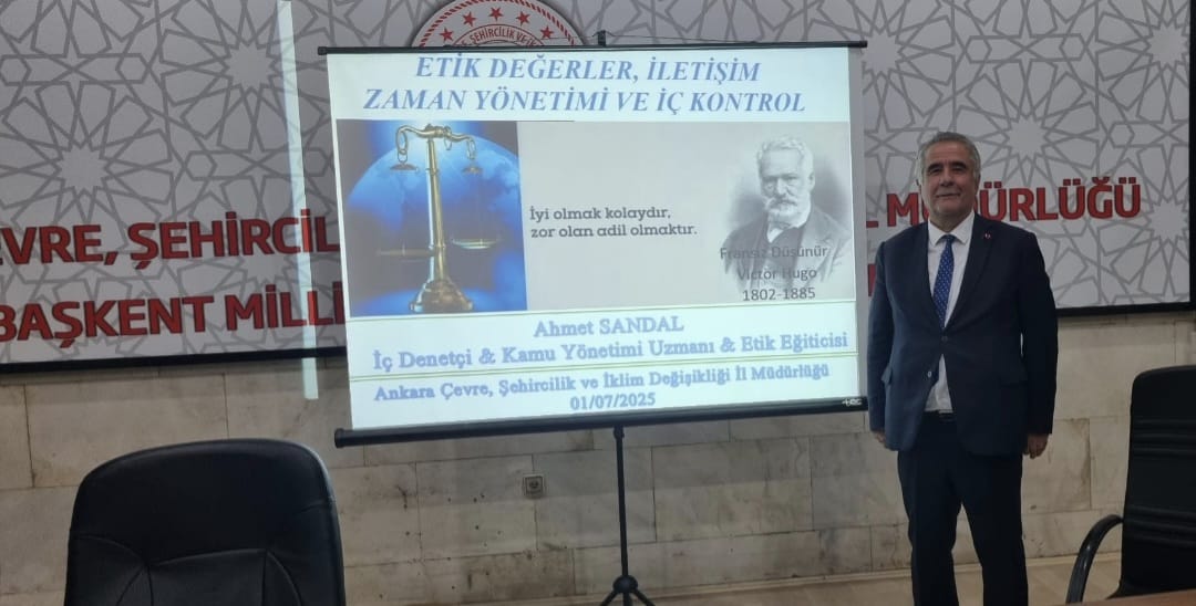 Bakanlığımızda görevli İç Denetçi & Kamu Yönetimi Uzmanı & Etik Eğitici'si Ahmet SANDAL tarafından 01.07.2025 tarihinde İl Müdürlüğümüz personeline "Etik Değerler, İletişim Zaman Yönetimi ve İç Kontrol Eğitimi" sunumu gerçekleştirilmiştir. Eğitime katılan Müdürlüğümüz personeline katılım belgesi verilmiştir.